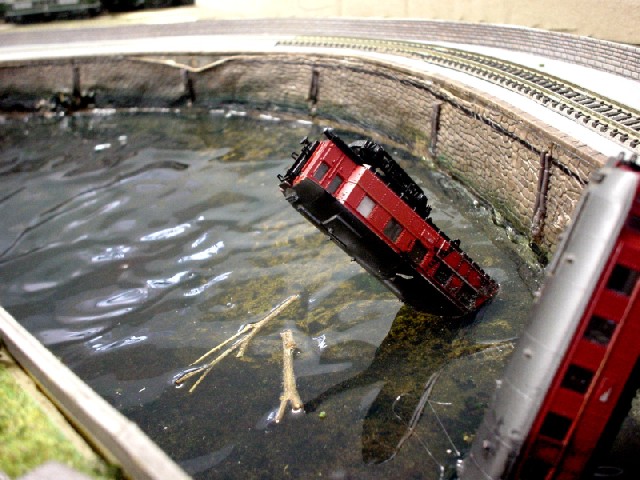 Eine Temperatur von 250 Grad bei der Bearbeitung des "Wassers" lässt die Kibri-Mauer schmelzen. © 2004 Siegfried Voigt Seth